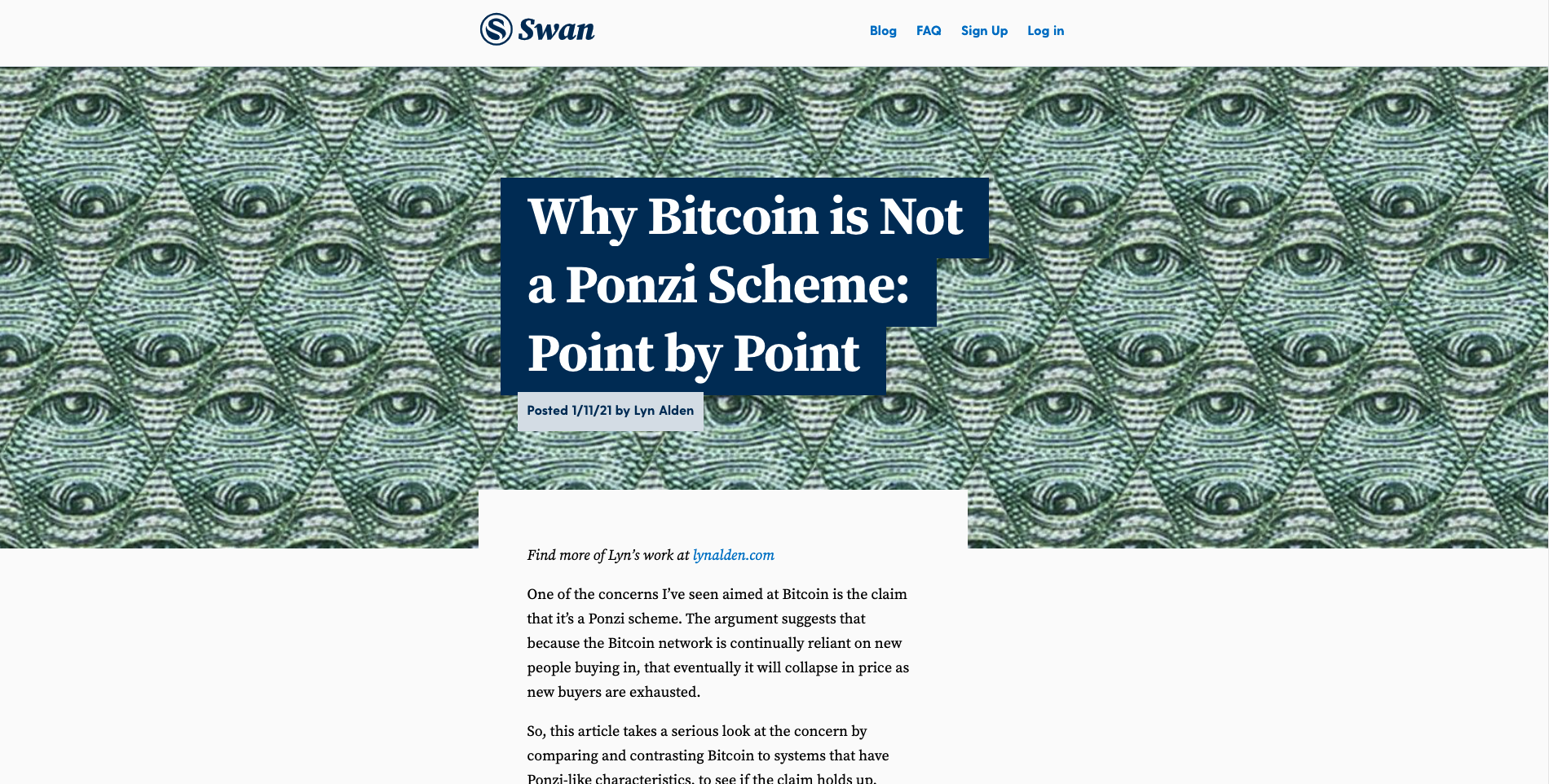 Why Bitcoin is Not a Ponzi Scheme - Point by Point: Swanbitcoin.com | Lyn Alden